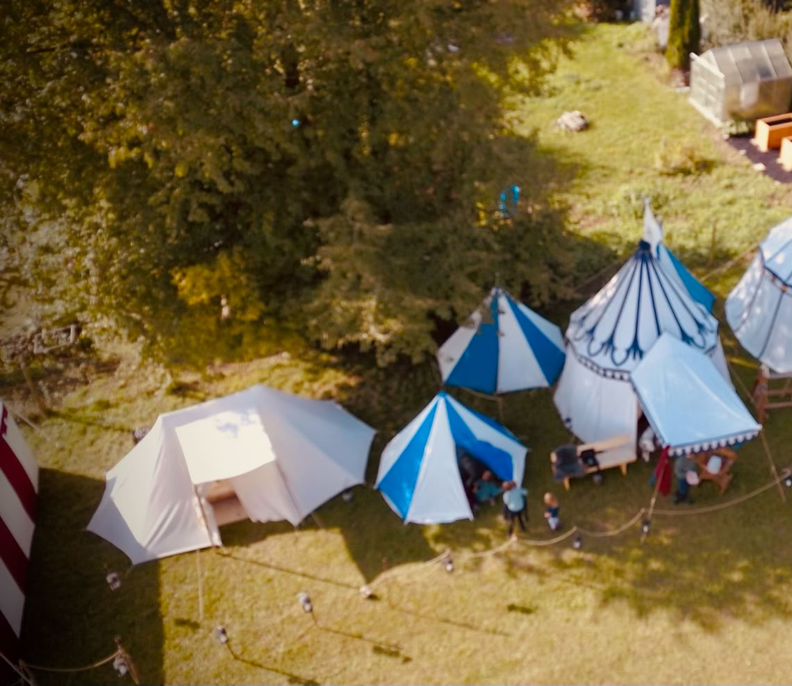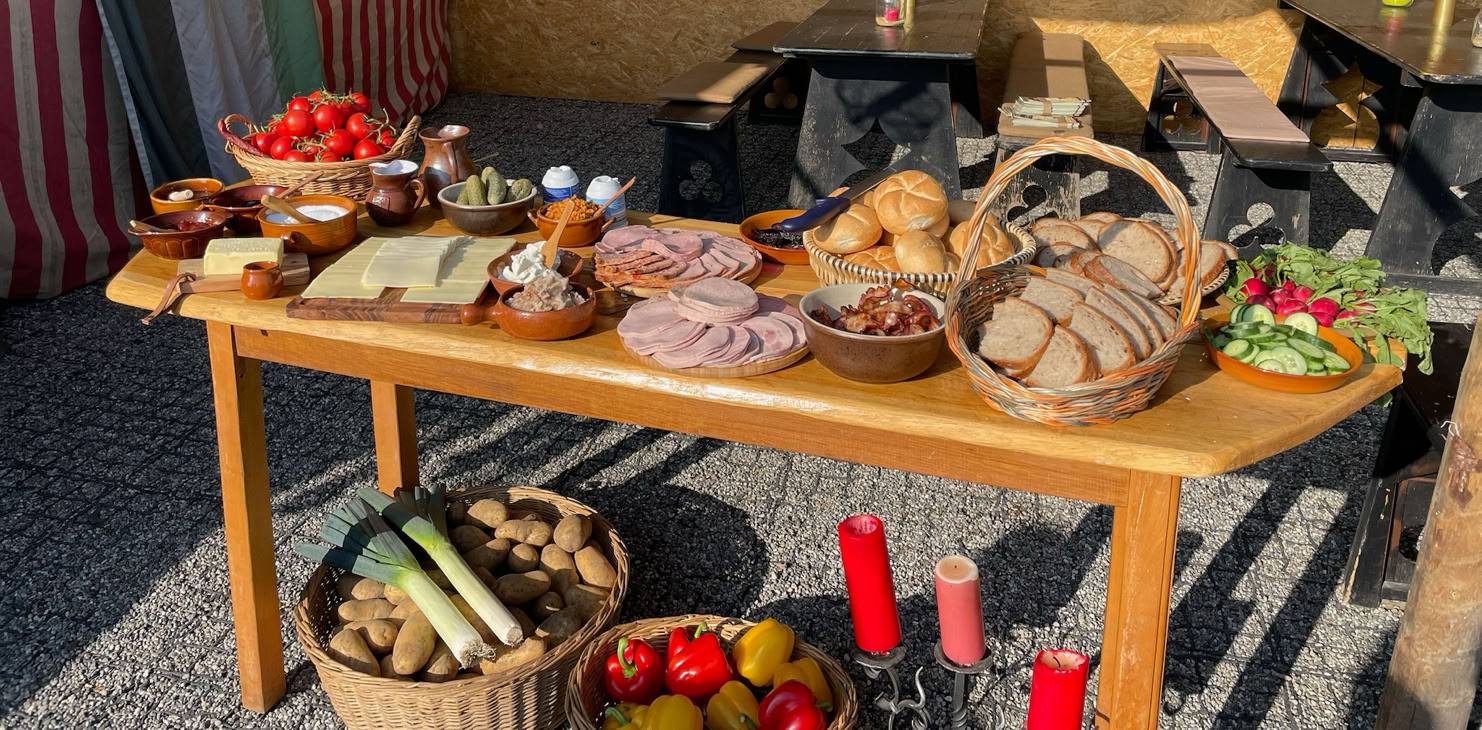 Unser Ziel ist es, das Mittelalter für Jedermann erlebbar zu machen. Das geht jedoch nur, wenn Interessierte auch die Möglichkeit bekommen, diese Zeitreise mit allen Sinnen anzutreten. Wie fühlt es sich an ein Schwert zu führen? Wie riecht es bei der Herstellung eines Bogens? Schmeckt das auf dem Feuer zubereitete Essen anders als gewohnt? Wie wurde die Gewandung hergestellt?